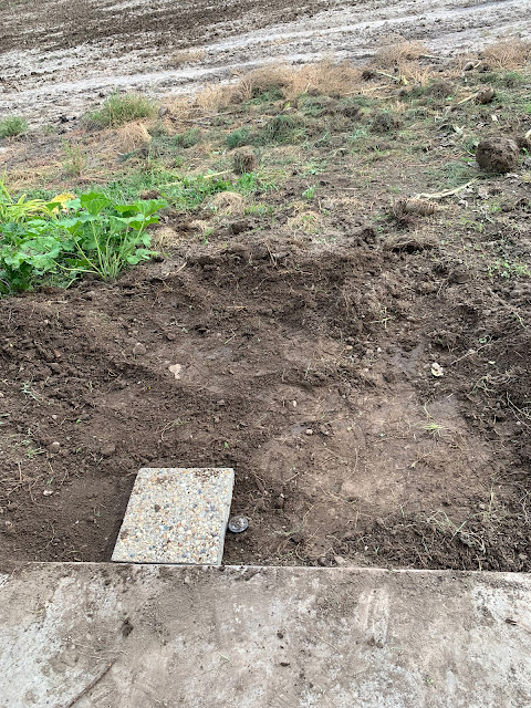 I ripped out a weedy patch of grass and laid down some pavers. Too bad I didn't take a picture of the finished project. It actually looks nice and allows us to drive up on the back patio without tracking mud or smashing flowers.